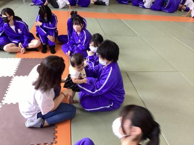NPO法人「わくわくネット65」様にご協力いただき、7組のお母さんと赤ちゃんに来校していただきました。