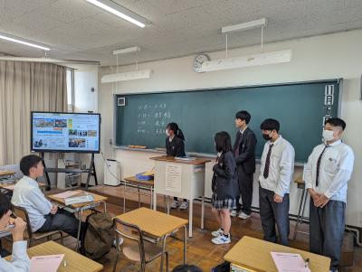 Googleスライドで作成した資料を電子黒板に映しプレゼンを行いました。