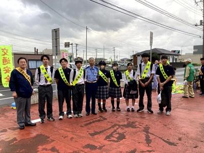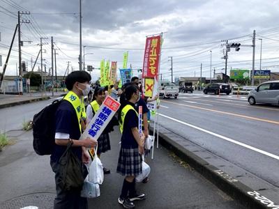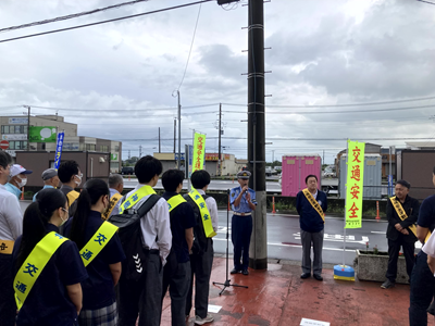 9月19日(金)、秋の全国交通安全運動に先立ち、本校生徒会(8名)が市主催の交通安全キャンペーンに参加しました。