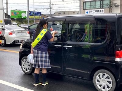 あいにくの小雨模様でしたが、生徒たちは元気よくドライバーの方々に声をかけ、啓発品を配布しました。ドライバーの方々から温かい言葉をいただく場面もあり、大変貴重な経験となりました。